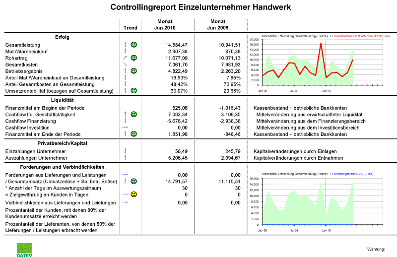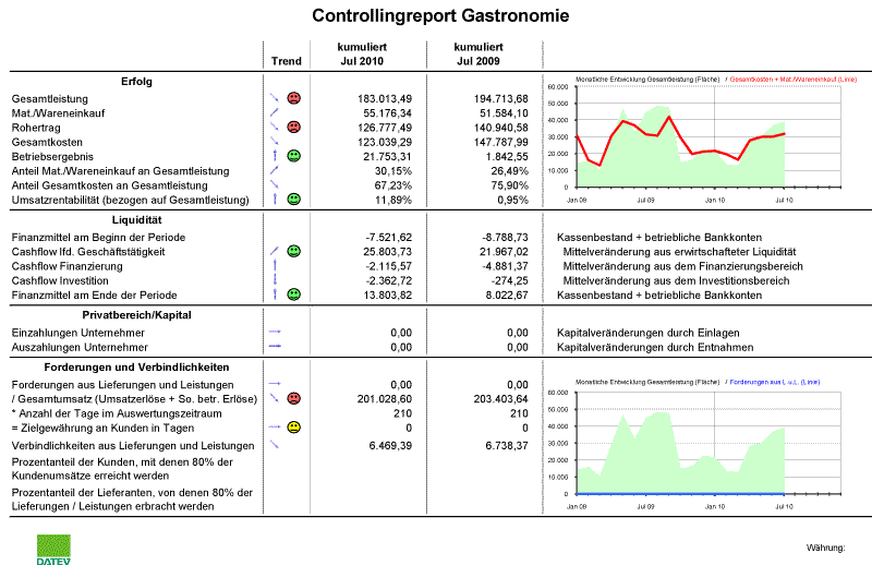 Genau dafür benötigen Sie aktuelle Zahlen und verständliche Auswertungen. Als Unternehmer müssen Sie die Kennzahlen Ihres Betriebes im Blick haben. Profitieren Sie von einer auf einen Blick verständlichen Auswertung, auf die Sie tagesaktuell zugreifen können.